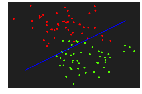 In order to create the initialization parameters of our separation line, i.e. different weights of the synaptic connections as well as the bias, the whole from the generated sample data